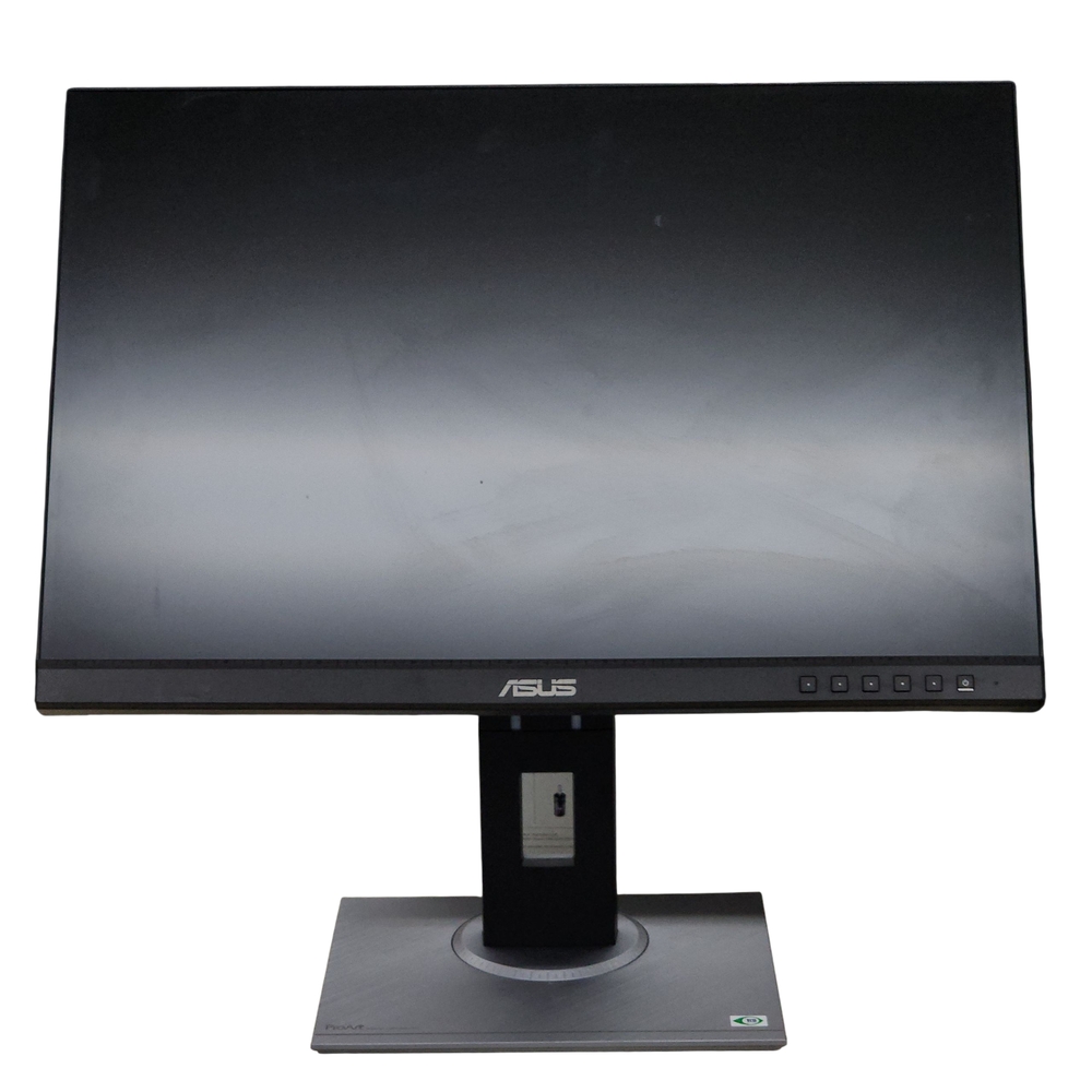 Anti-glare, tilt, pivot, swivel, height adjustable, black monitor.