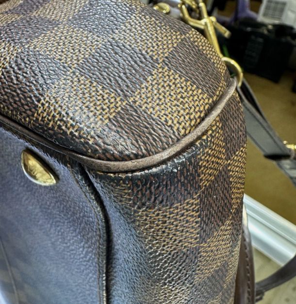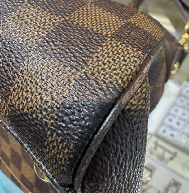 Condition - Preowned very good- Outer hardware has some rub wear. 4 bottom corners have rub wear (pictured) one white scratch on outer material (pictured) . Inner material is clean with some wear.