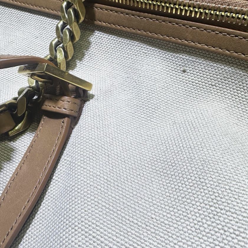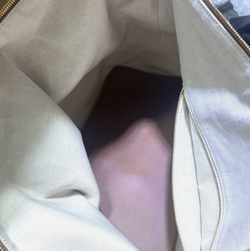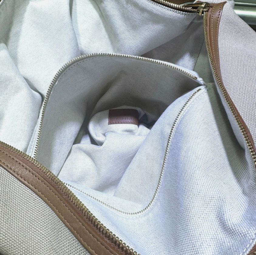 Condition: Preowned very good - very light wear. Bottom leather has some scratching from being set down. Outer material is clean with light evidence of use. inner material looks very clean. Check out photos.